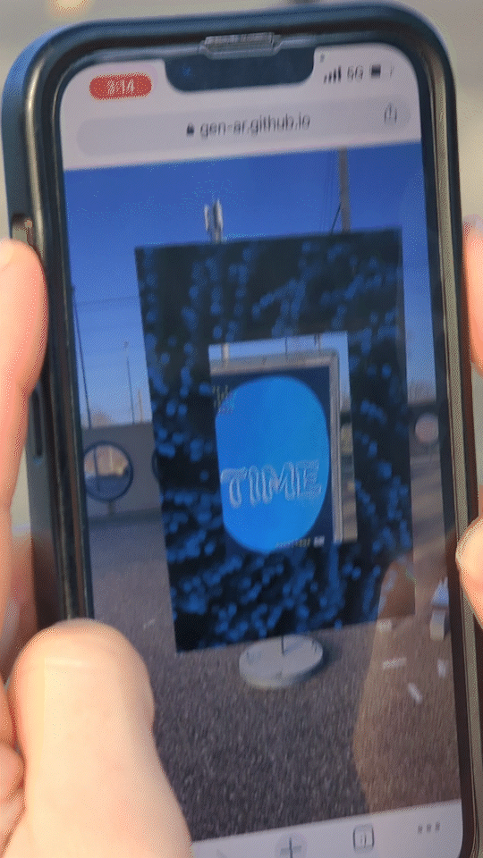 AR animations built in P5LIVE, a live coding version of p5.js, using a print poster as the target image.